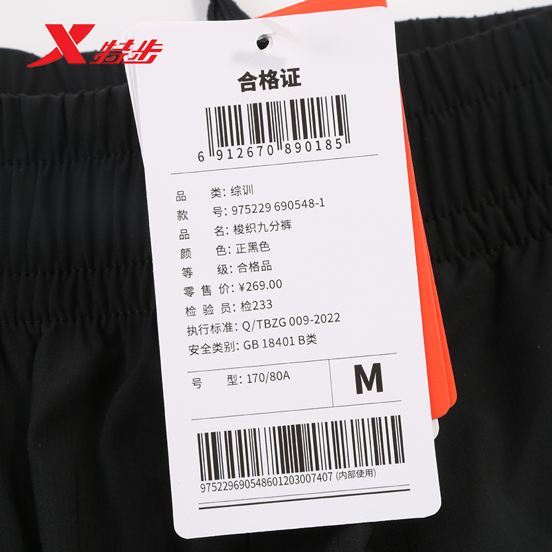 特步运动裤男2025夏季新款冰丝透气防晒速干九分裤975229690548
