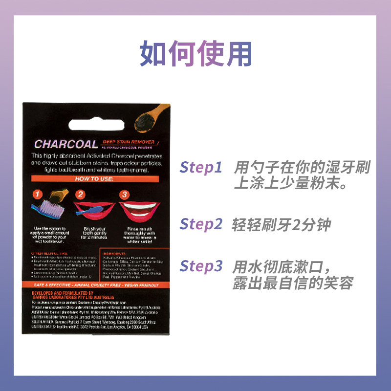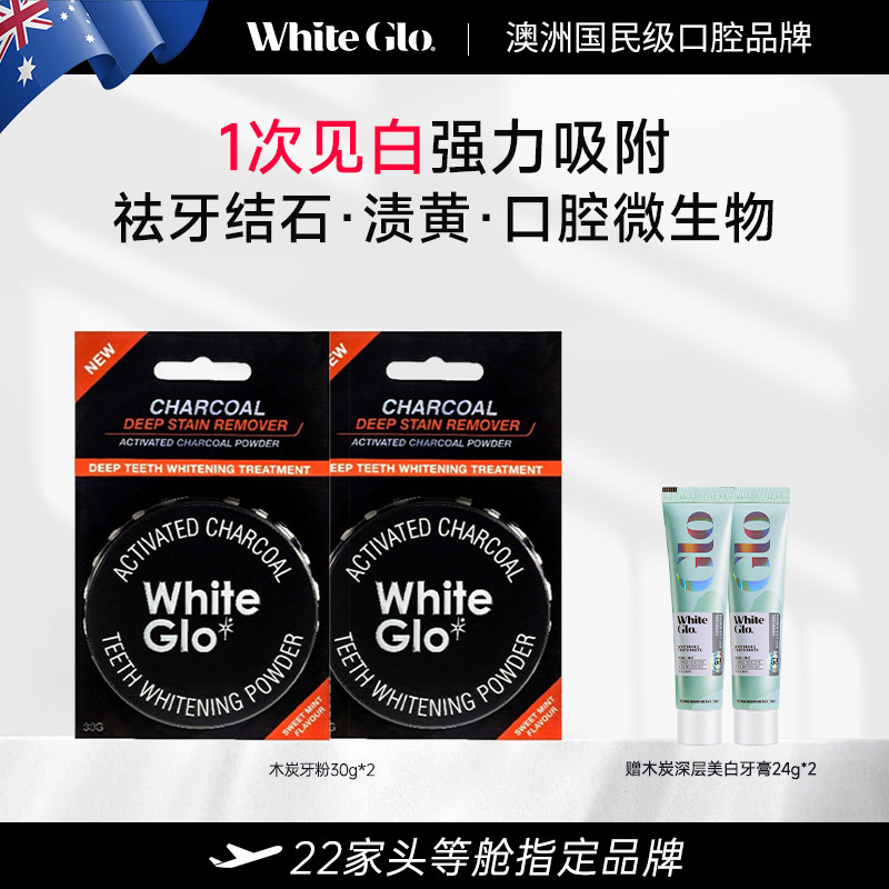 WhiteGlo惠宝木炭牙粉30g高活性碳吸附口腔护理去牙结石牙齿美白
