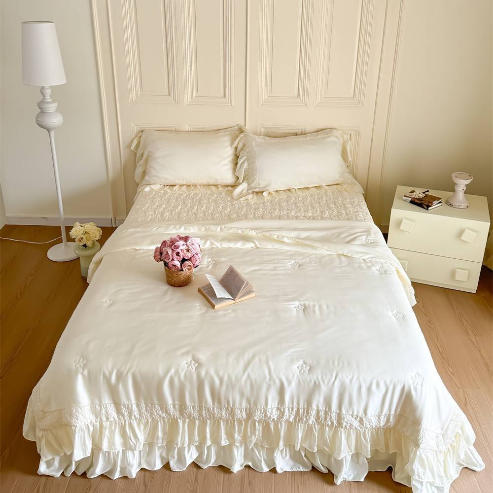 韩版公主风兰精天丝夏被床盖四件套荷叶花边刺绣清凉夏日床品