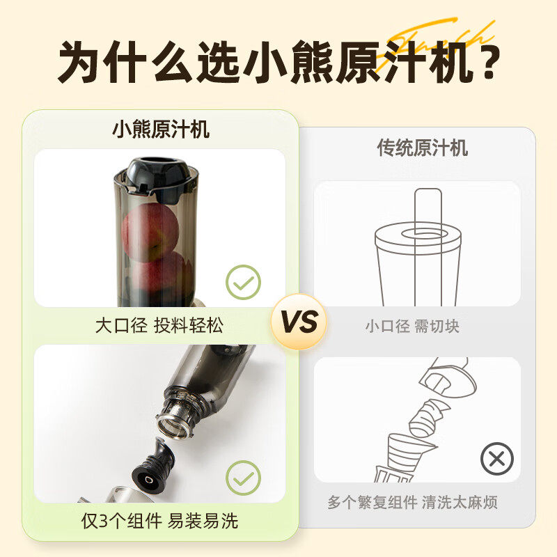 小熊原汁机榨汁机家用榨汁分离全自动大口径免切果蔬果汁机可拆洗