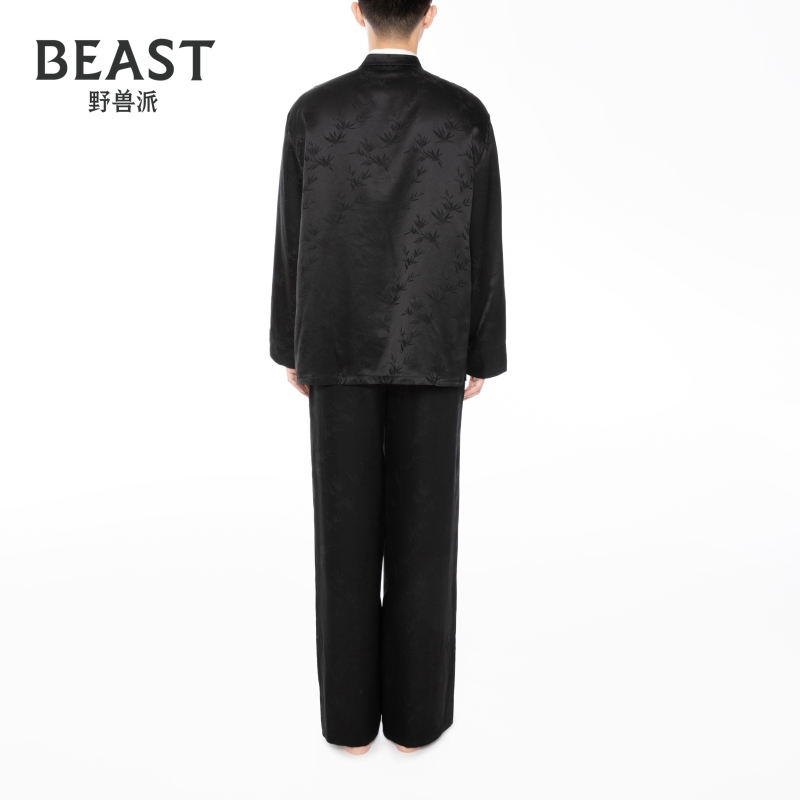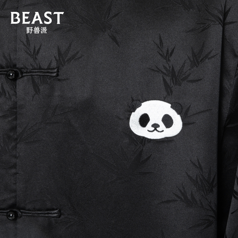 BEAST野兽派熊猫噗噗黑色真丝提花家居服送男女生日礼物
