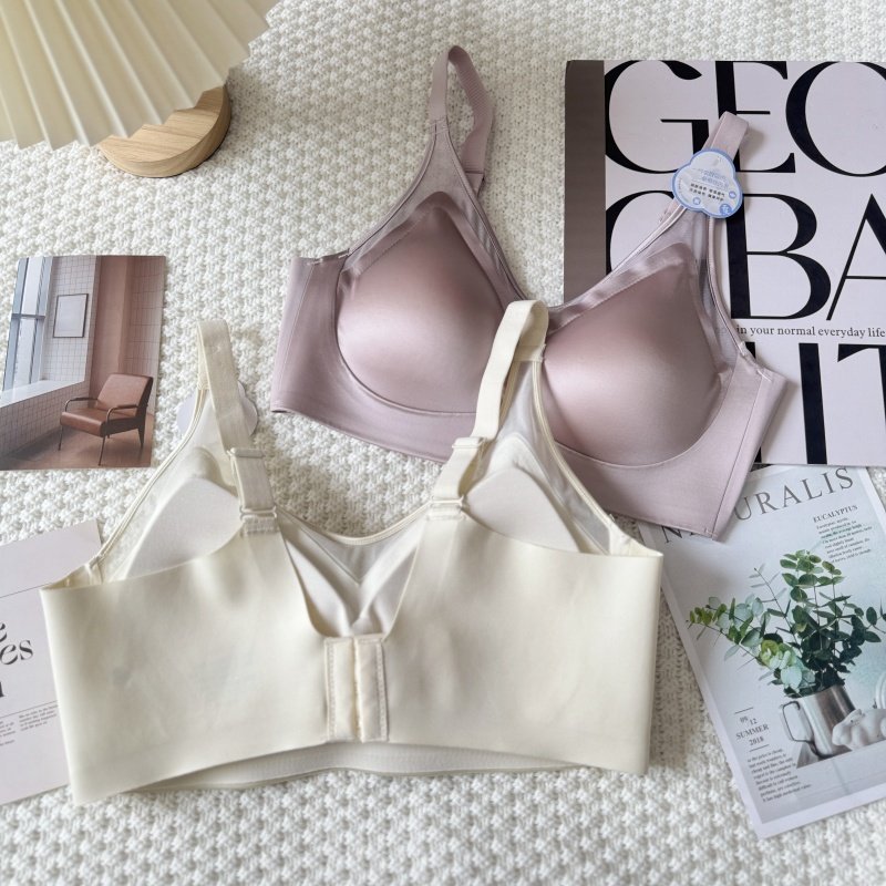 2025春夏新款桑蚕丝养护缎面无痕文胸罩女小胸聚拢舒适薄款无钢圈