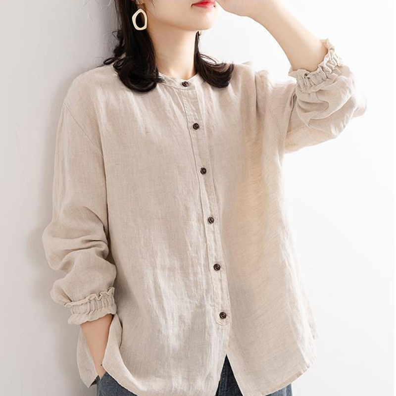 文艺棉麻衬衫夏秋复古大码女装减龄衬衣宽松显瘦亚麻休闲外衣上衣