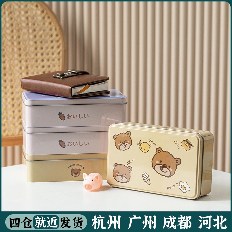 铁盒收纳盒 长方形可爱糖果马口铁盒子化妆品小首饰桌面储物盒ins