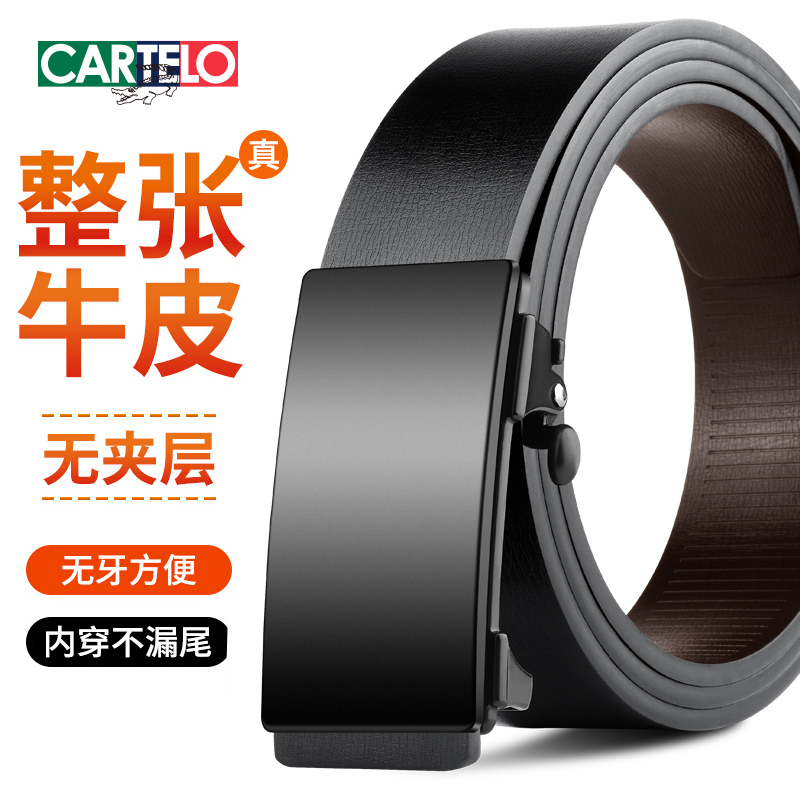 卡帝乐鳄鱼皮带男士真皮无牙自动扣内穿牛皮商务高档百搭裤腰带