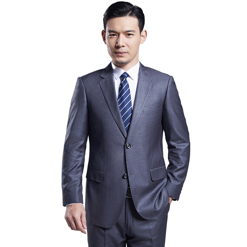 皮尔卡丹西服套装男士韩版灰色西装商务正装职业装结婚礼服爸爸装