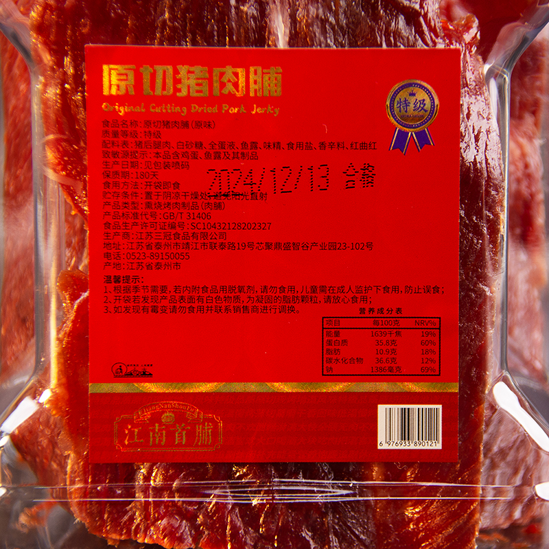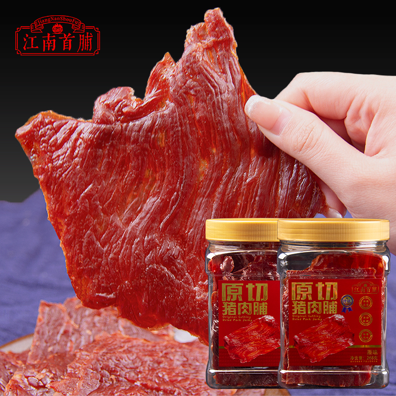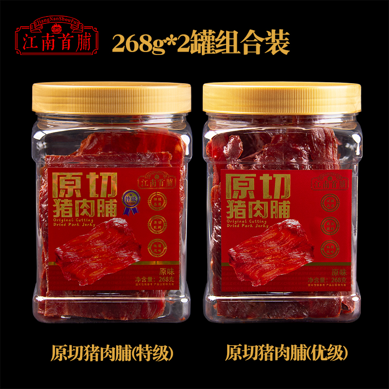 江南首脯原切大片猪肉脯268g*2罐原味特级靖江猪肉干年货礼盒礼袋