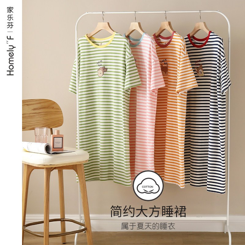 睡裙女士睡衣夏季夏天薄款纯棉短袖长款家居服孕妇加大码宽松可爱