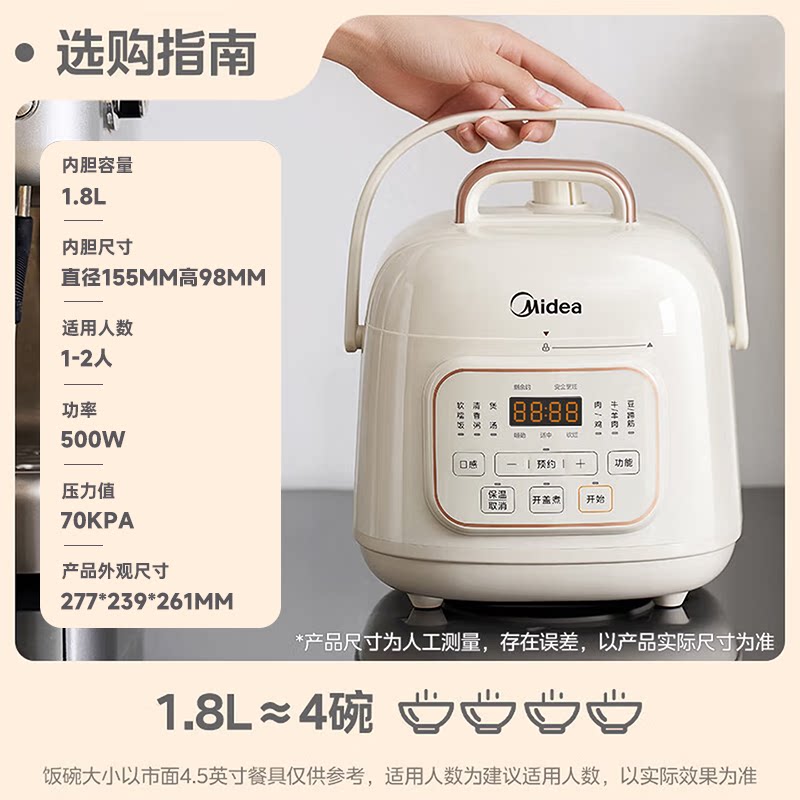 美的电压力锅家用小型全自动小容量1-3人多功能高压锅E220饭煲M1