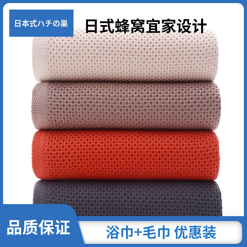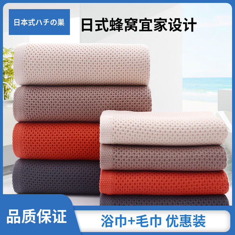纯棉浴巾蜂窝毛巾吸水不掉毛柔软速干成人家用男女全棉洗澡大套装