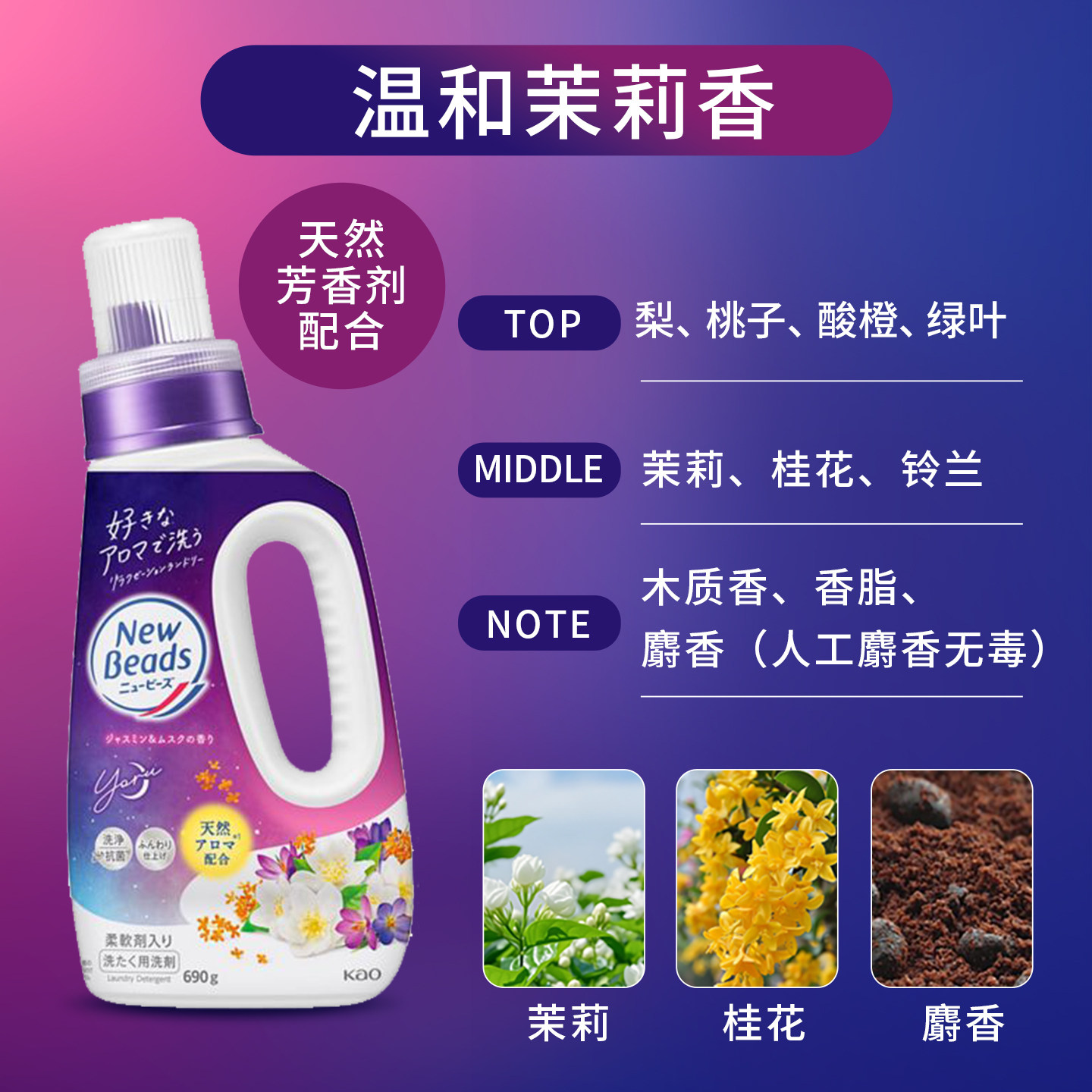 花王日本玫瑰茉莉香氛柔顺洗衣液