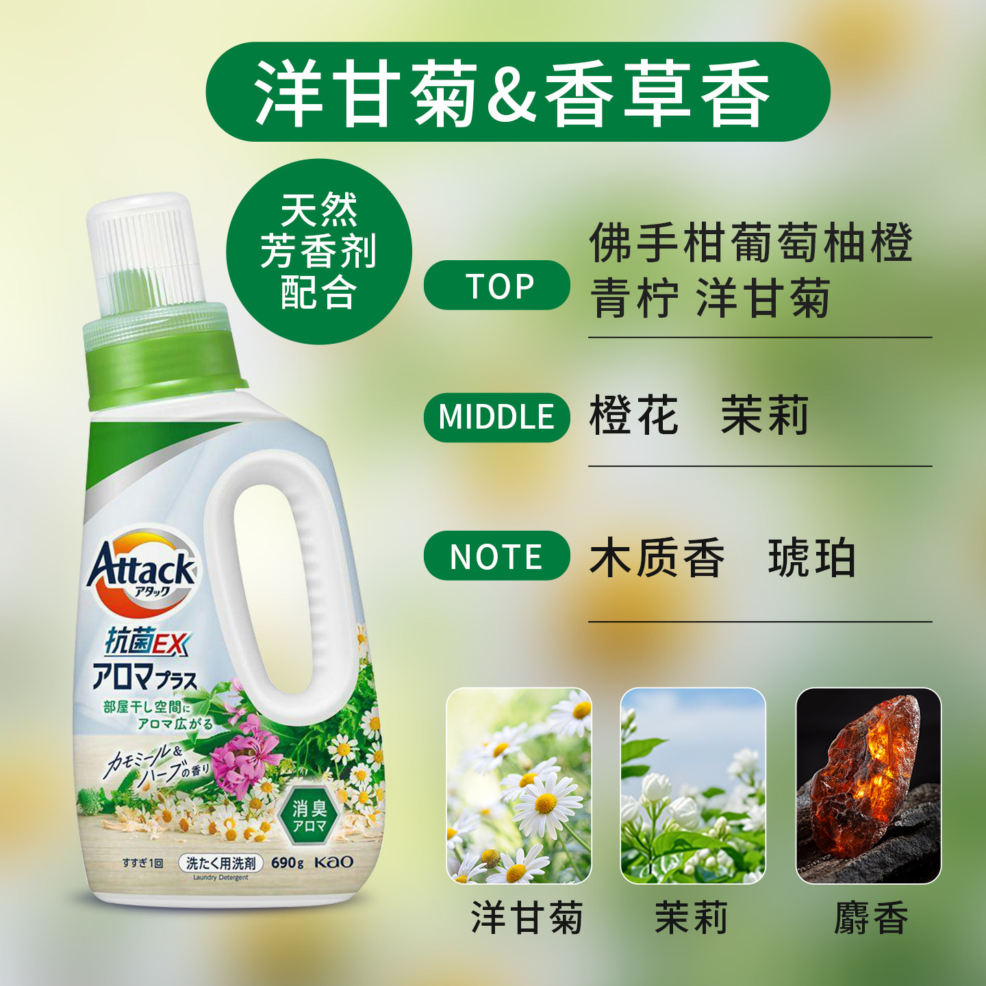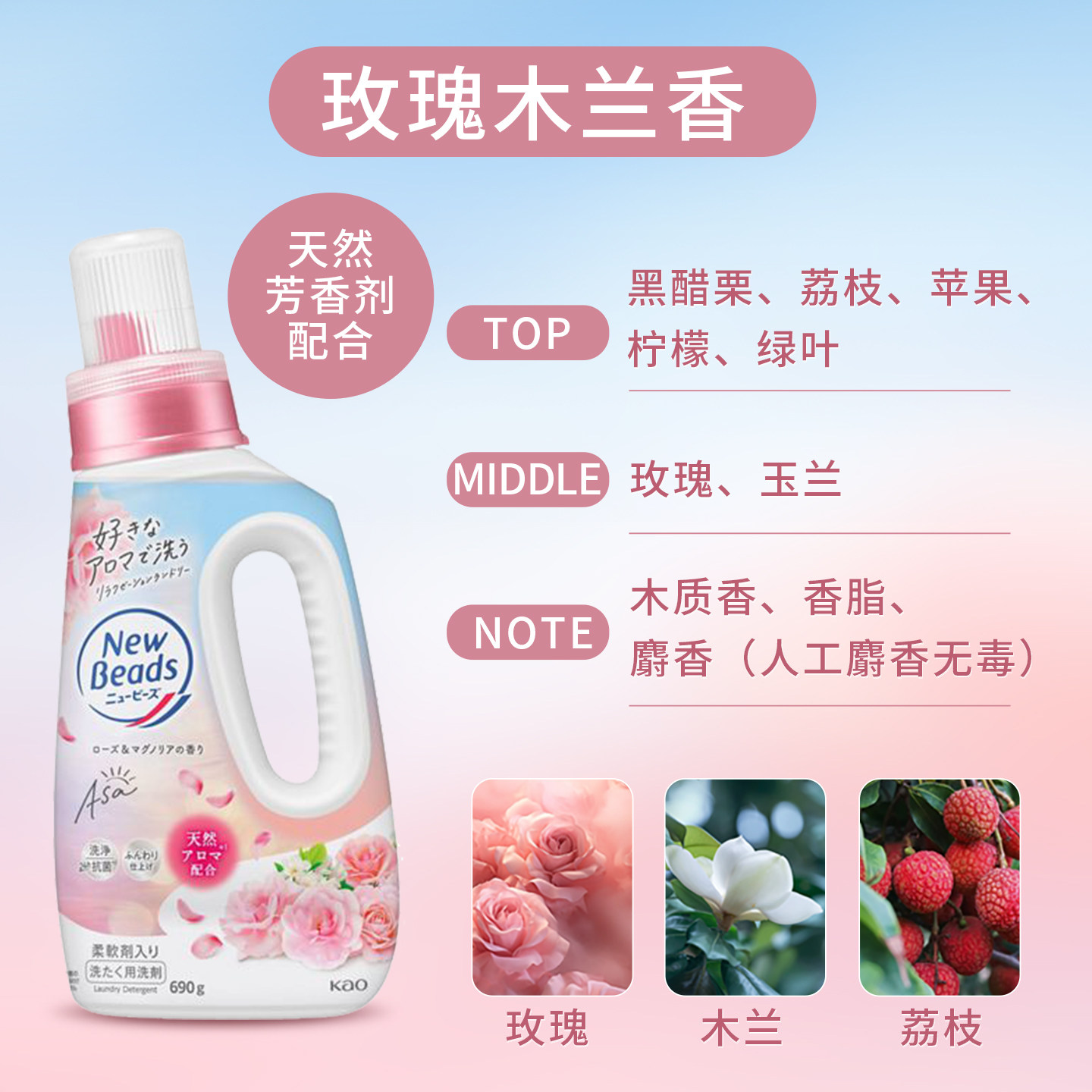 花王日本进口香氛洗衣液持深层洁净玫瑰茉莉花香柔顺香氛二合一