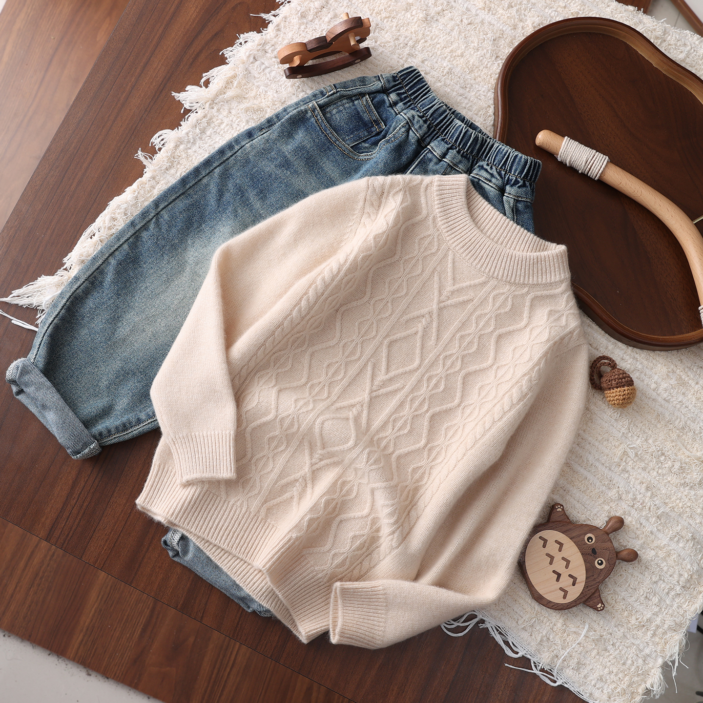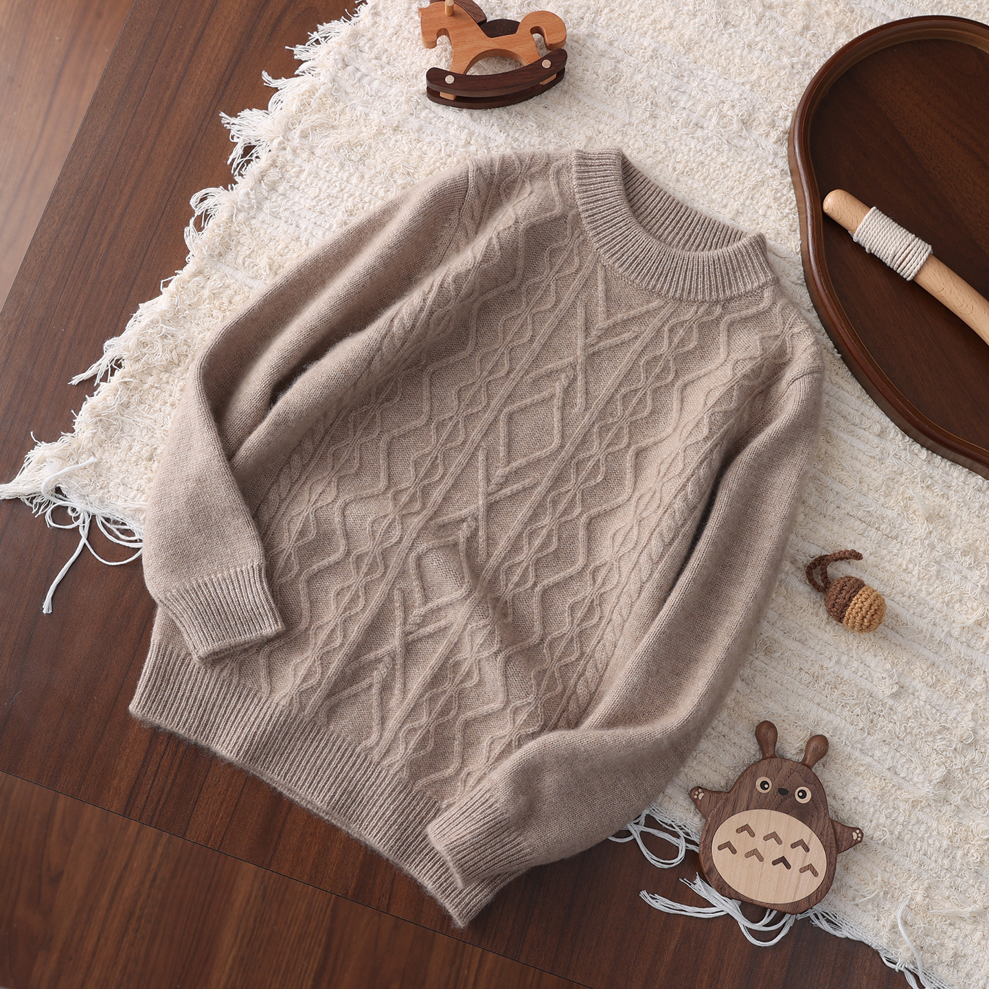 儿童100%山羊绒衫加厚半高领男童纯色羊毛衣女童中大童针织打底衫