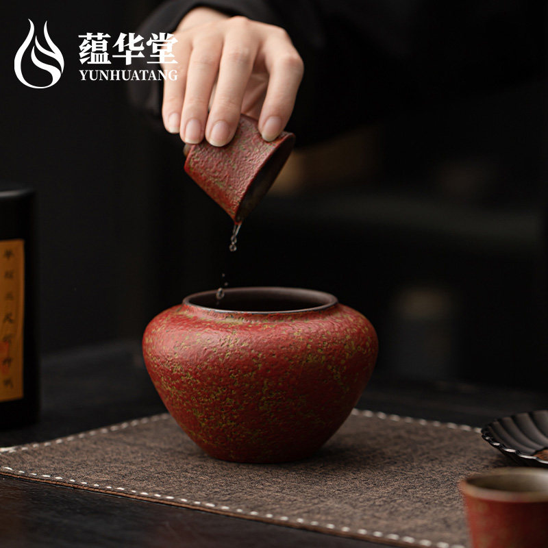 蕴华堂 满山红老岩泥建水家用陶瓷茶洗中式茶渣缸废水桶茶具配件