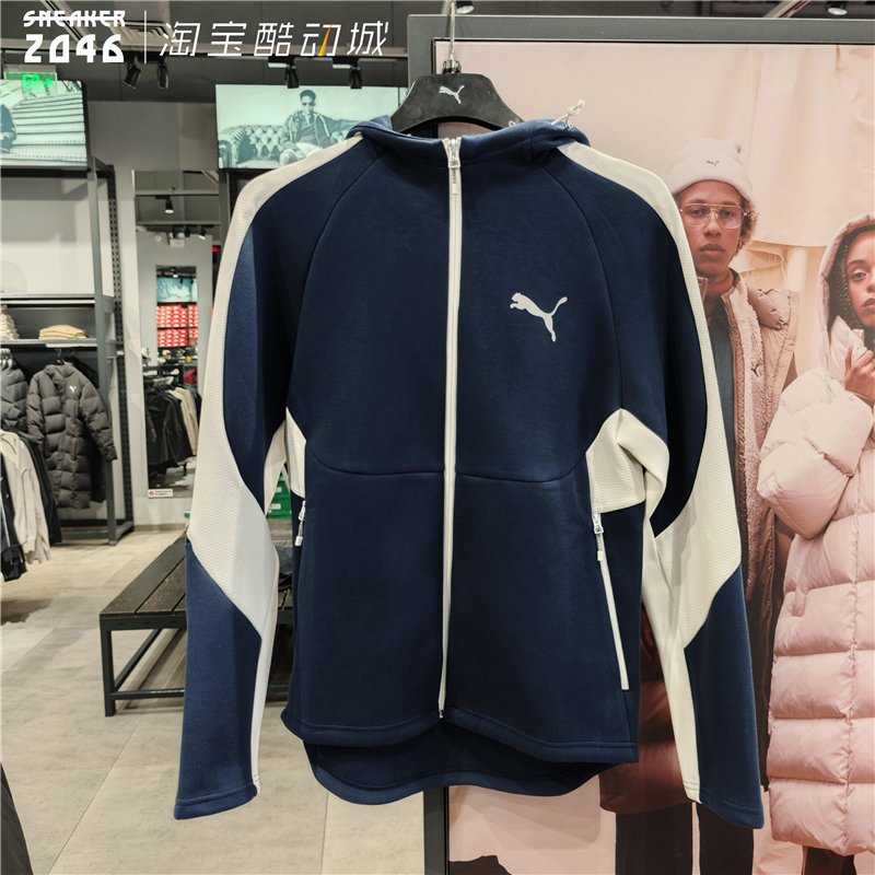 PUMA彪马 男高克重棉质针织修身运动弹力拉链连帽卫衣外套681184