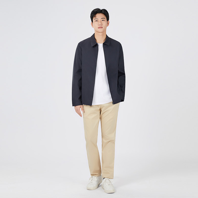 乔治白春秋男士短款夹克轻商务休闲纯色外套翻领拉链开衫上衣