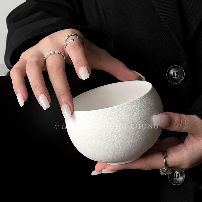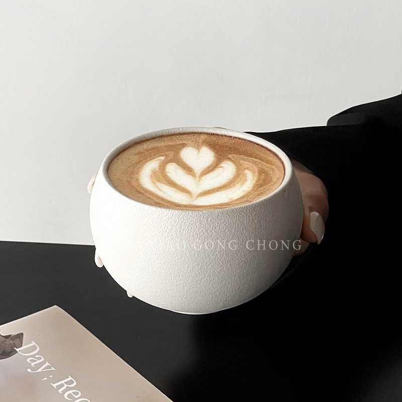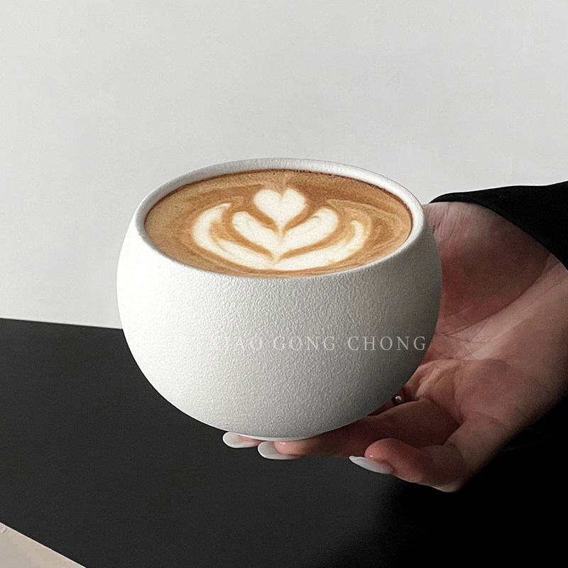 复古纯白磨砂石纹陶瓷杯蛋杯拿铁咖啡杯下午茶小众卡布奇洛拉花杯