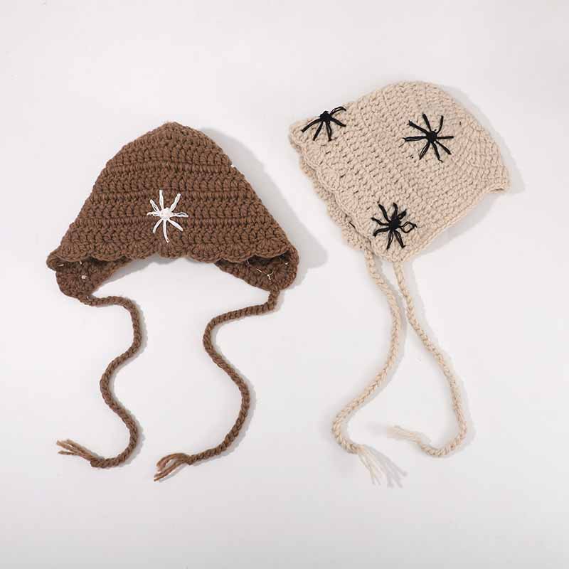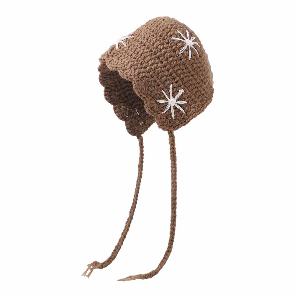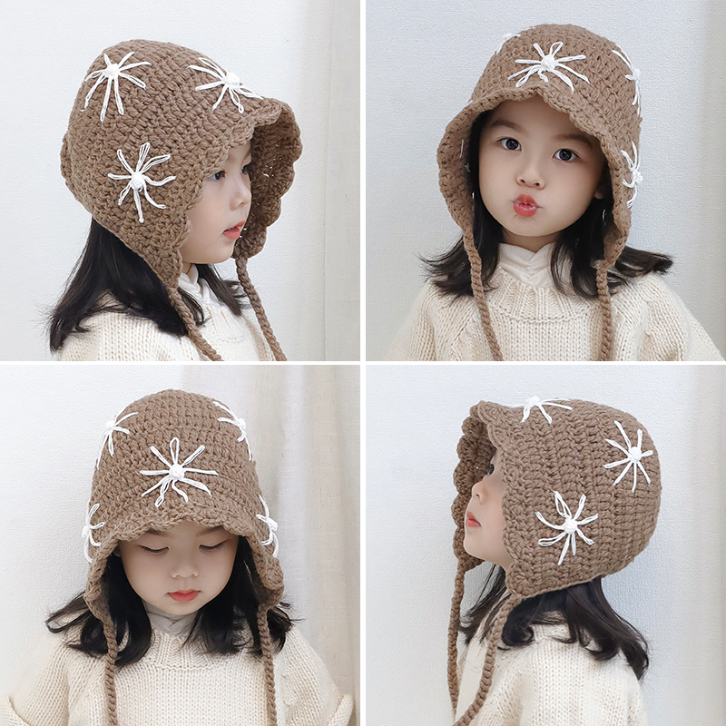 儿童帽子秋冬季女童手工刺绣针织毛线套头帽冬款宝宝系防风护耳帽