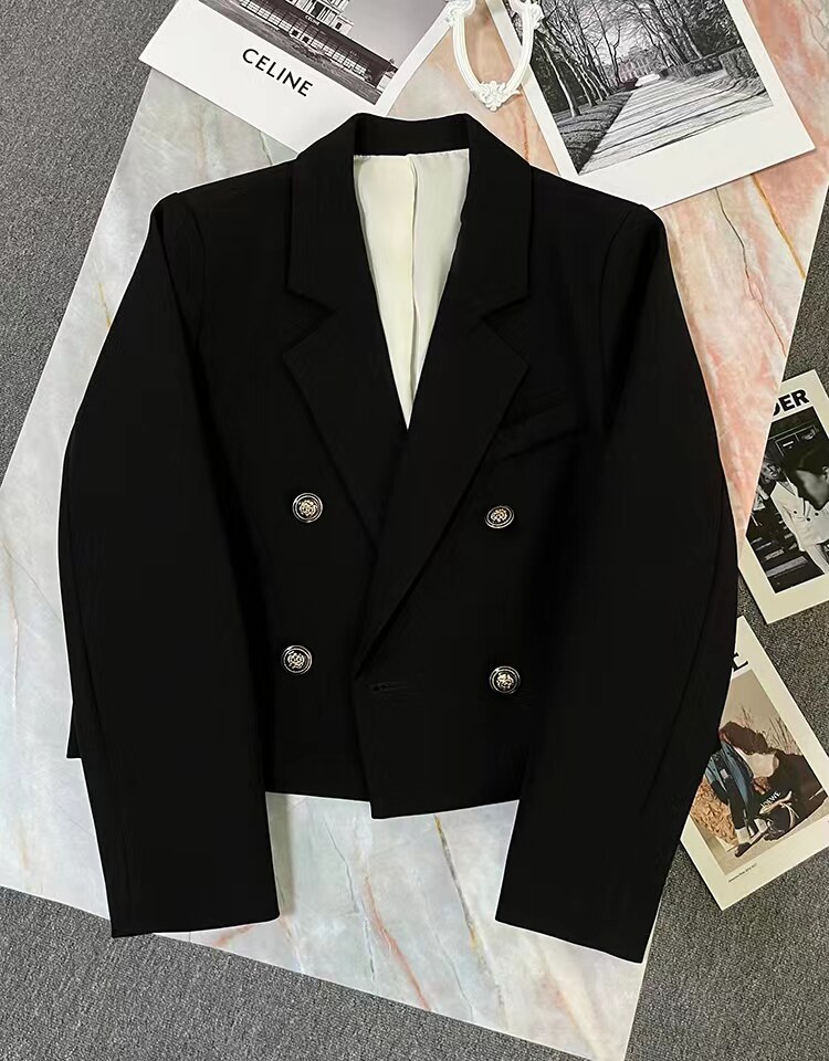 双排扣短款西装外套小香风小个子