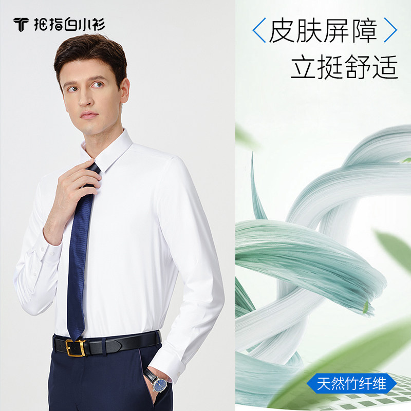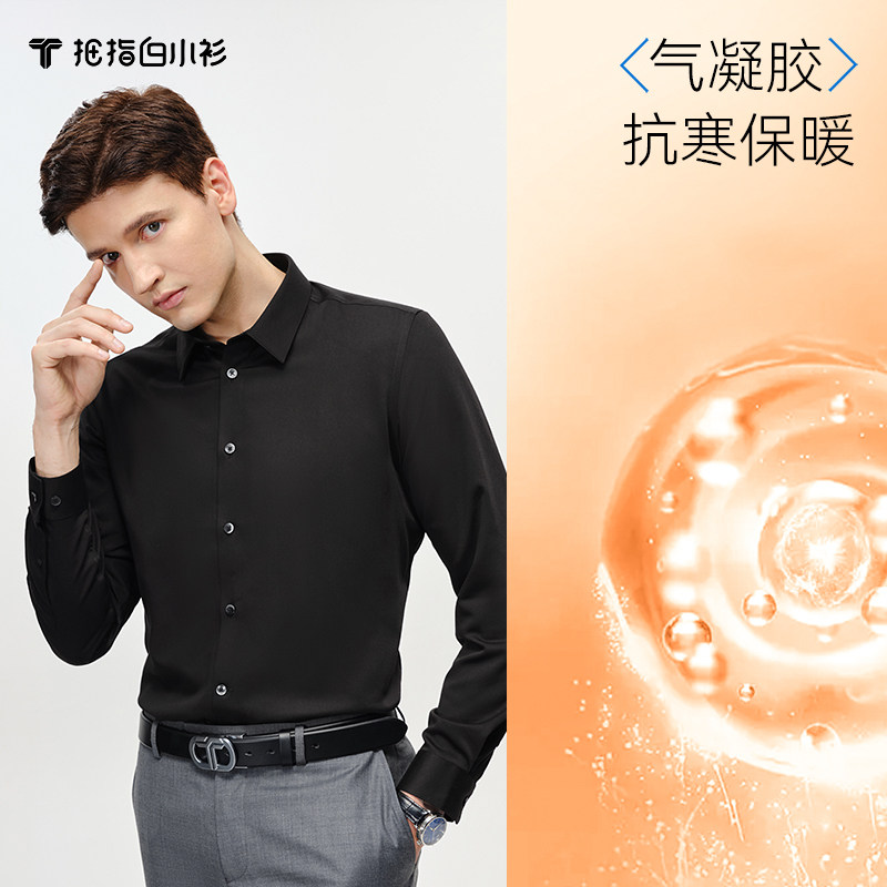 拇指白小衫气凝胶棉长袖衬衫男冬季竹纤维商务休闲加厚保暖白衬衣