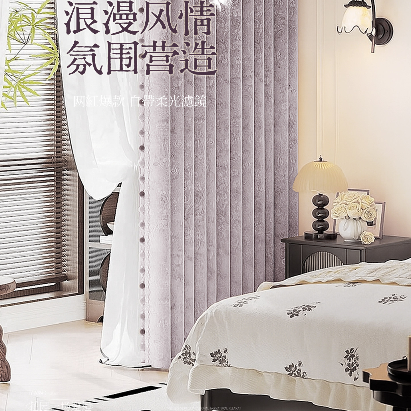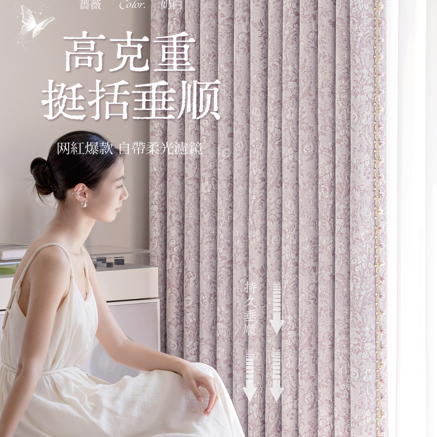 新款紫色窗帘女孩女生卧室雪尼尔网红法式莫里斯花高级感卧室遮光