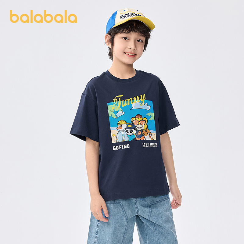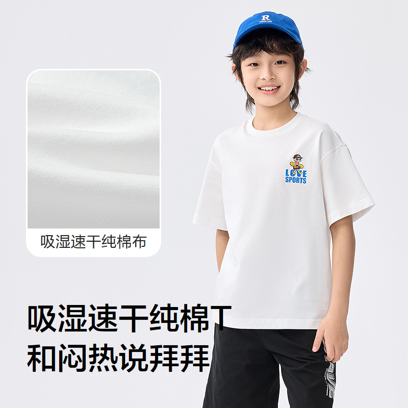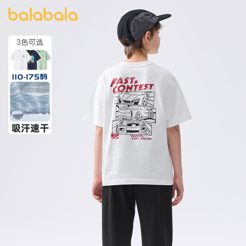 巴拉巴拉男童短袖T恤中大童速干衣2025夏装新款童装儿童打底衫棉1