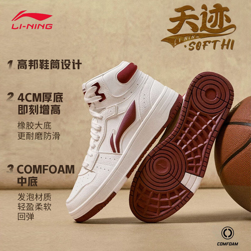 李宁拼接系带复古款高帮休闲板鞋