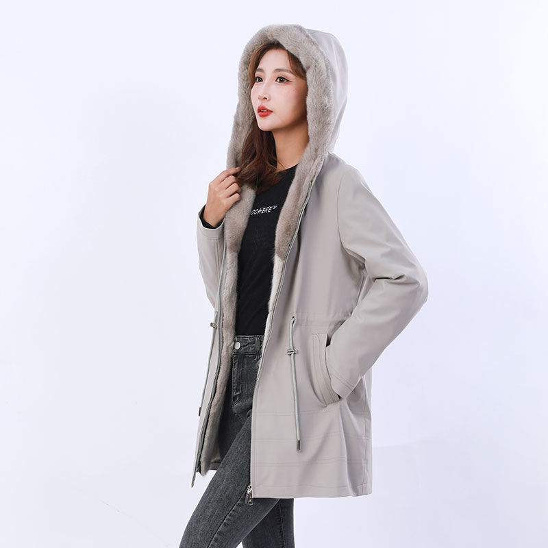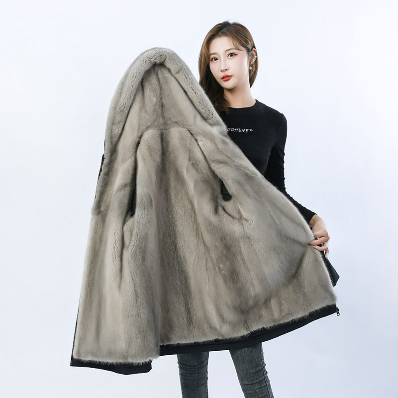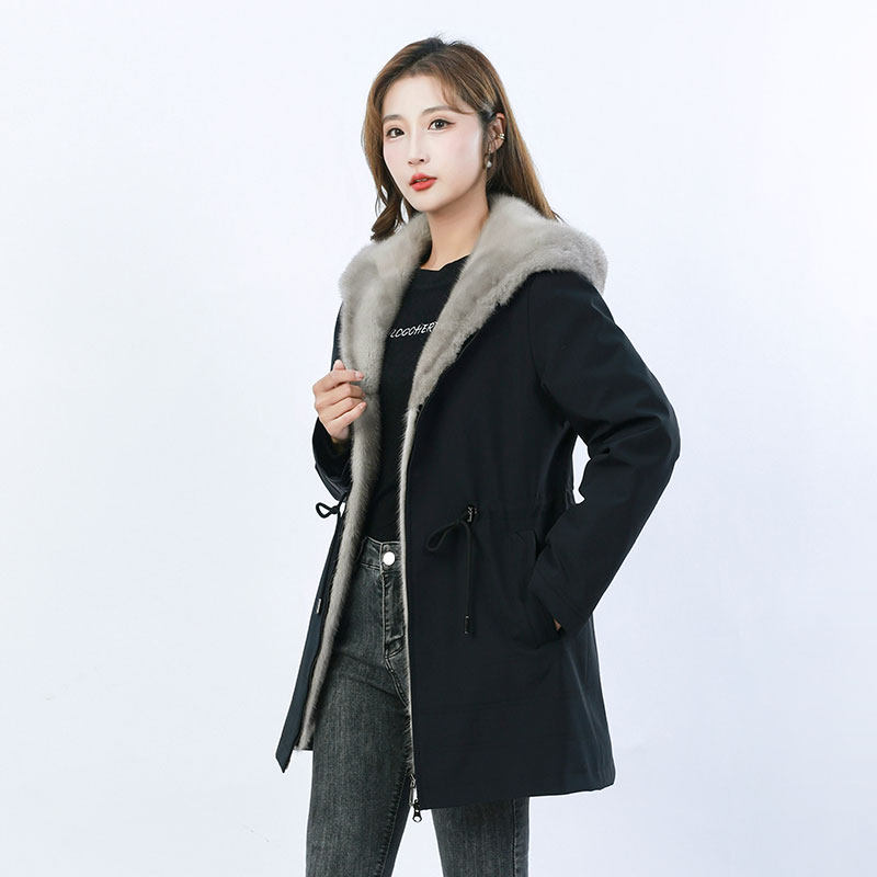 派克服女短款2025冬水貂獭兔毛内胆小个子皮草尼克服女整貂皮外套