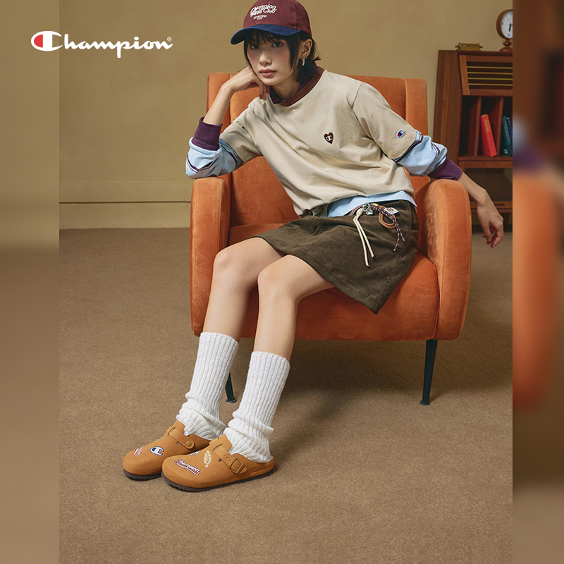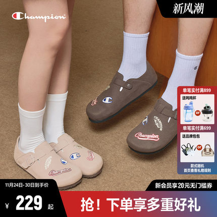 Champion冠军凉鞋包跟电绣勃肯鞋女2025秋冬新款休闲加绒鞋子男