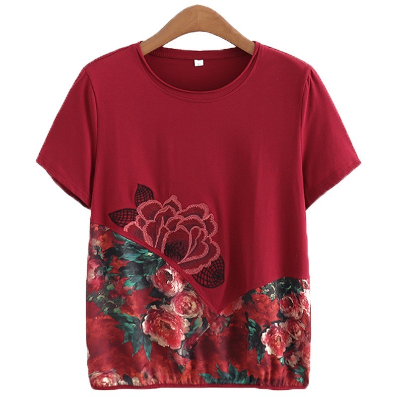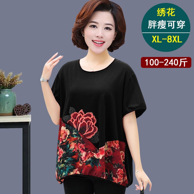 中老年t恤衫女短袖加肥加大码妈妈纯棉上衣夏装中年打底汗衫200斤