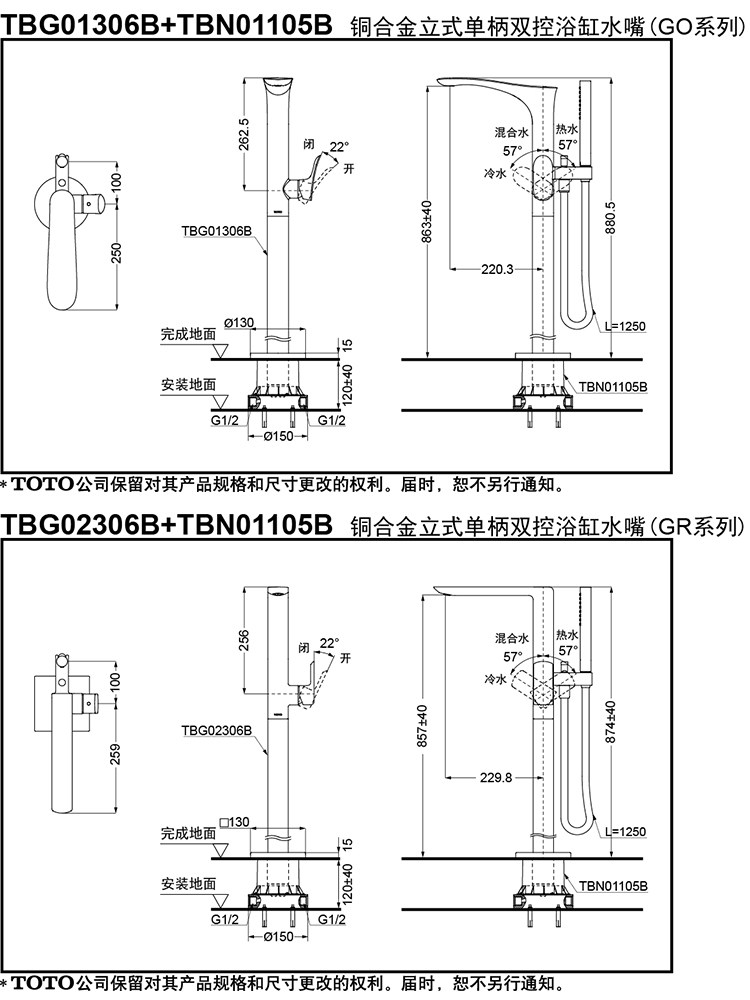 TOTO浴缸独立式龙头高脚冷热水TBG01306B TBG02306缸边龙头(05-D)