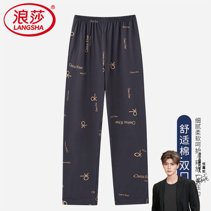 浪莎男士睡裤夏季纯棉长裤薄款夏款休闲大码单裤春秋宽松家居裤