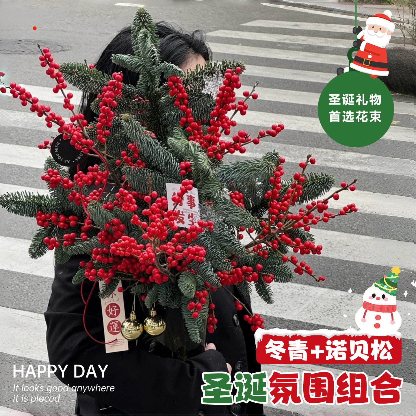 诺贝松冬青鲜切花圣诞节装饰绿植
