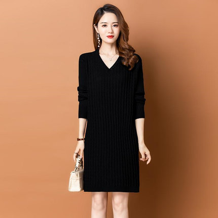胖妹妹特大码300斤中长款打底衫V领宽松显瘦遮肚百搭针织毛衣裙女