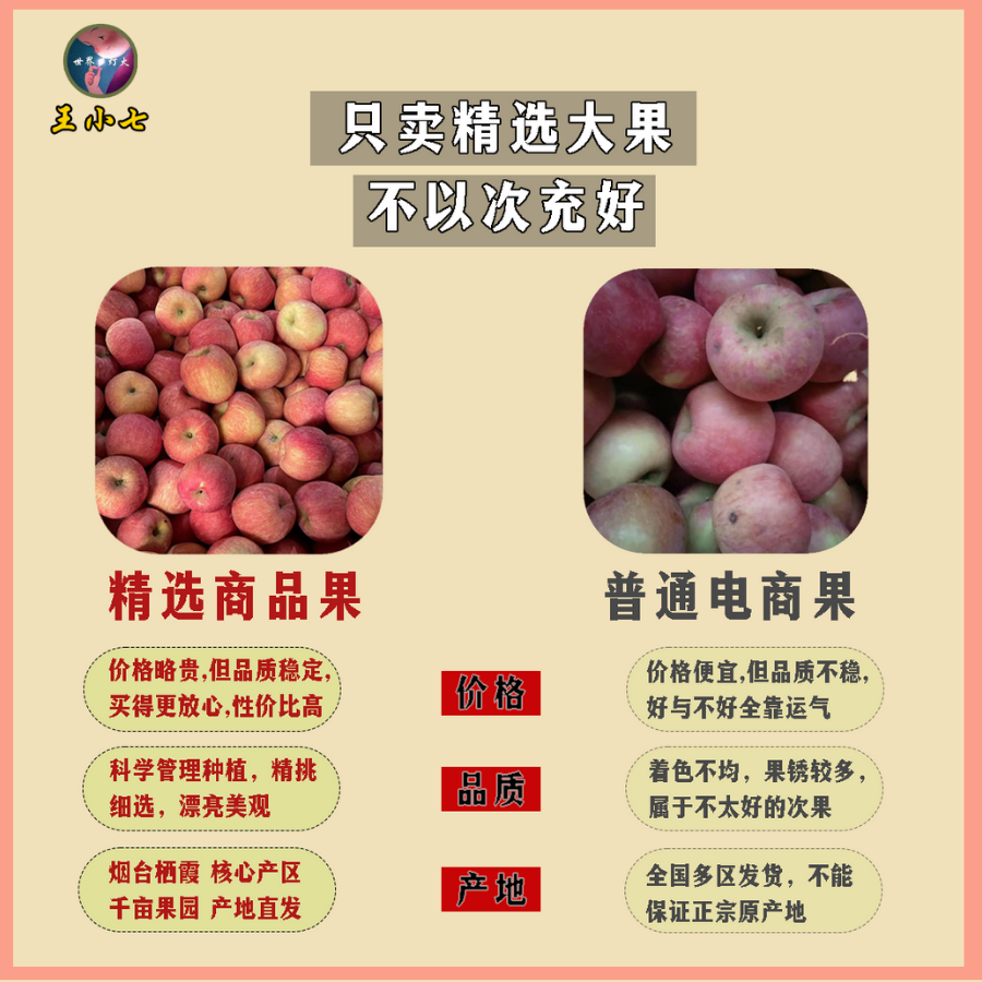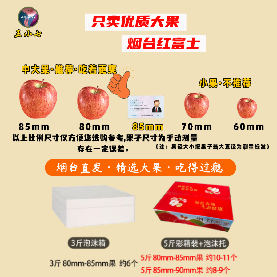 烟台红富士苹果栖霞新鲜水果不打蜡优质脆甜一级大果王小七精选