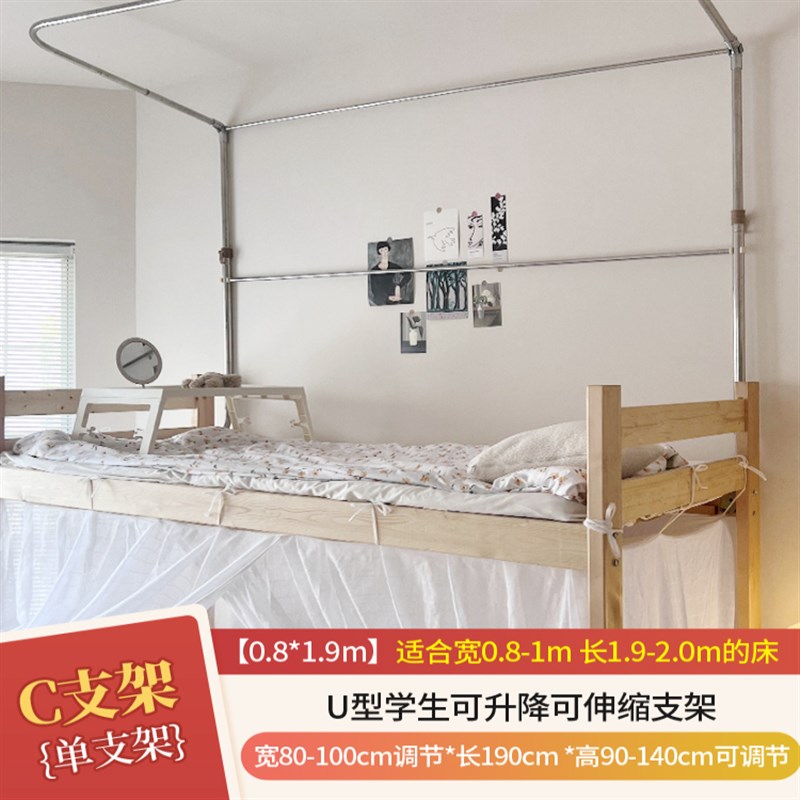 u型可伸缩款学生宿舍蚊帐支架加厚寝室床帘单人床上下铺1.米烤漆