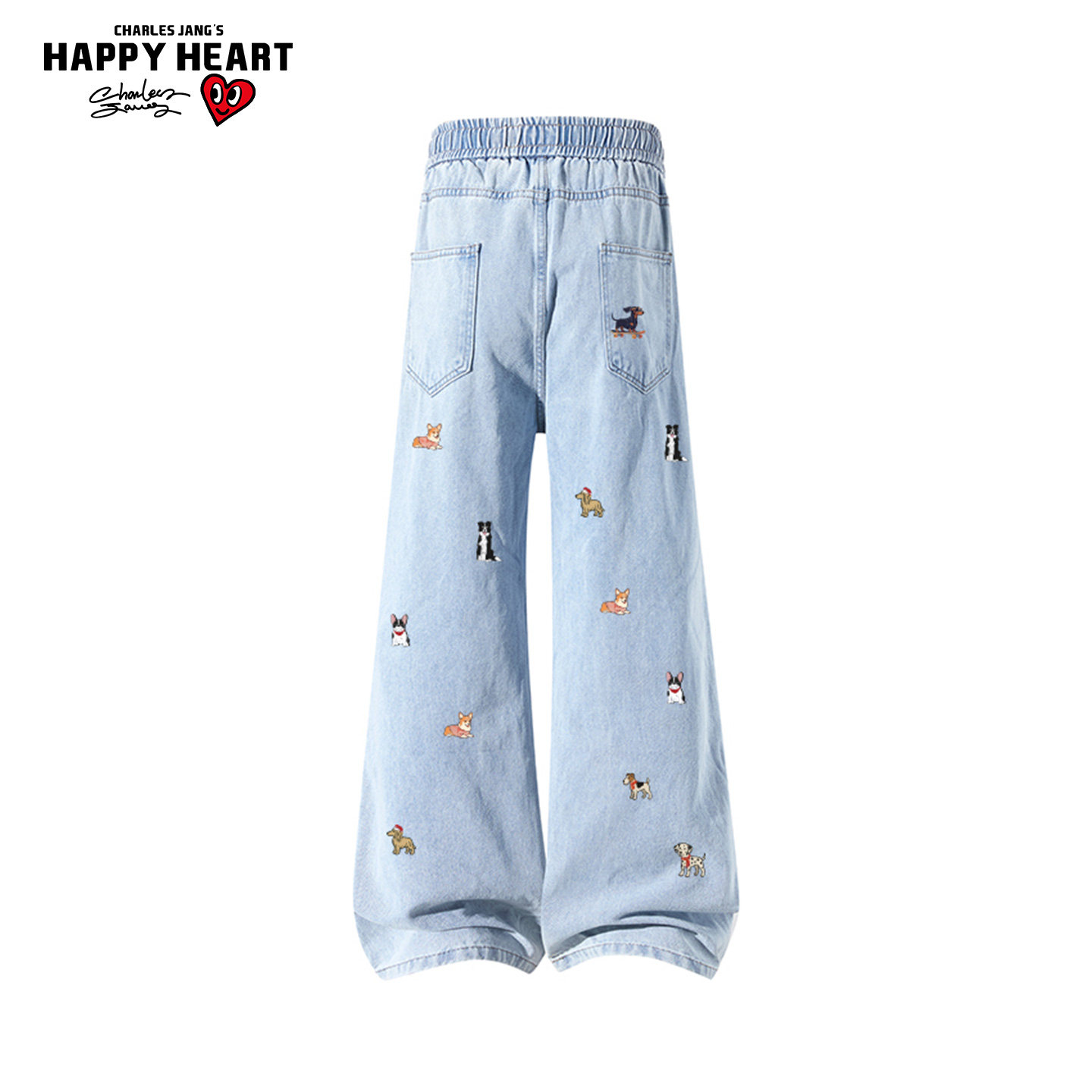 查尔斯桃心牛仔裤男春秋季新款潮流宽松阔腿直筒垂感抽绳休闲长裤