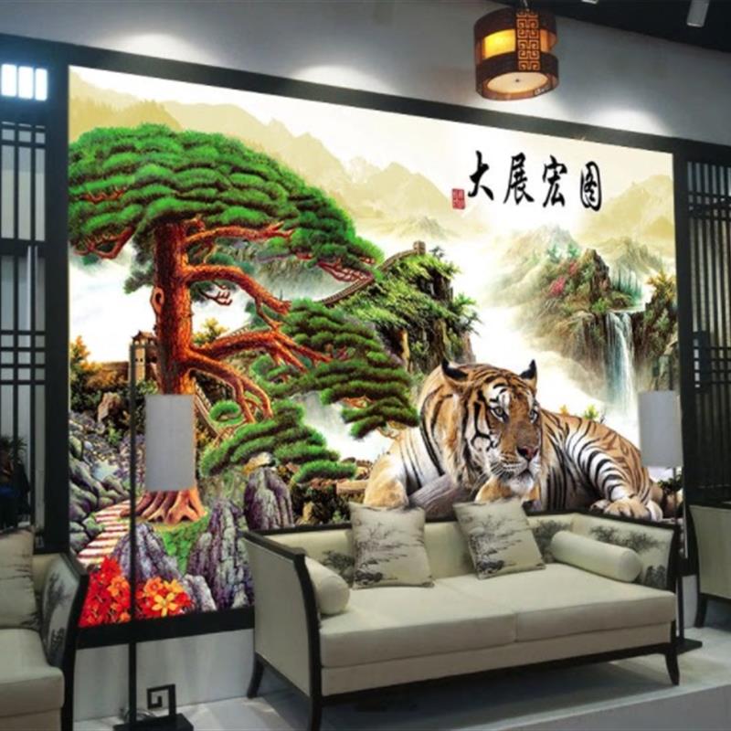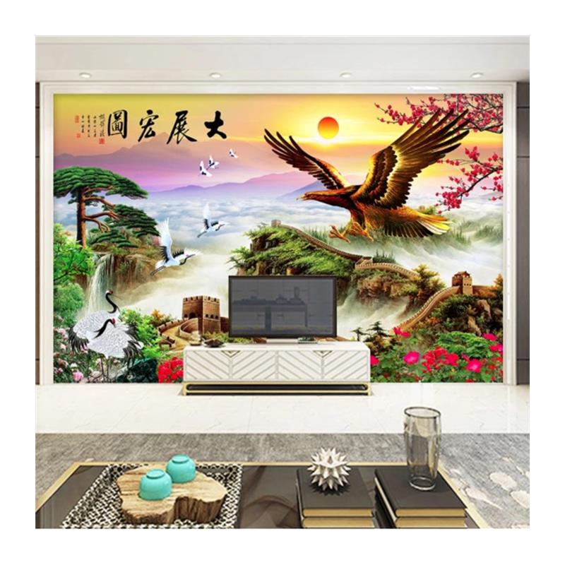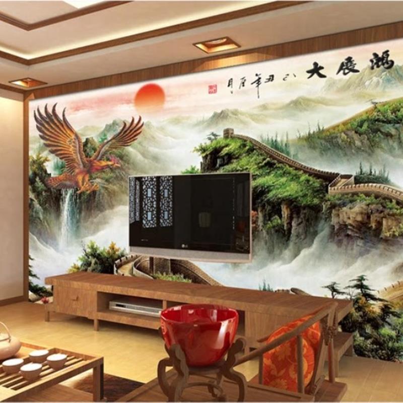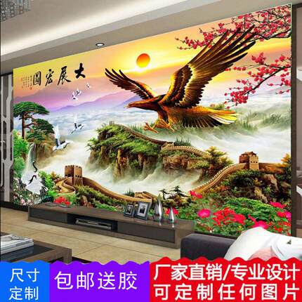 3D立体大展宏图墙纸16D中式电视背景墙壁纸长城山水风景装饰壁画