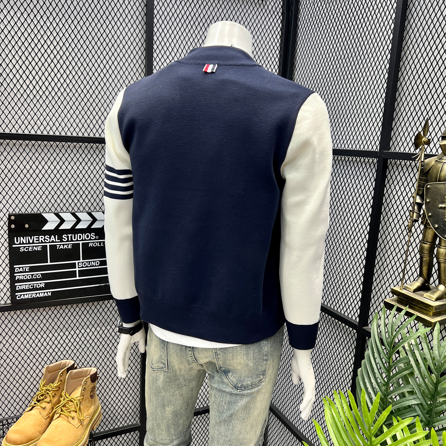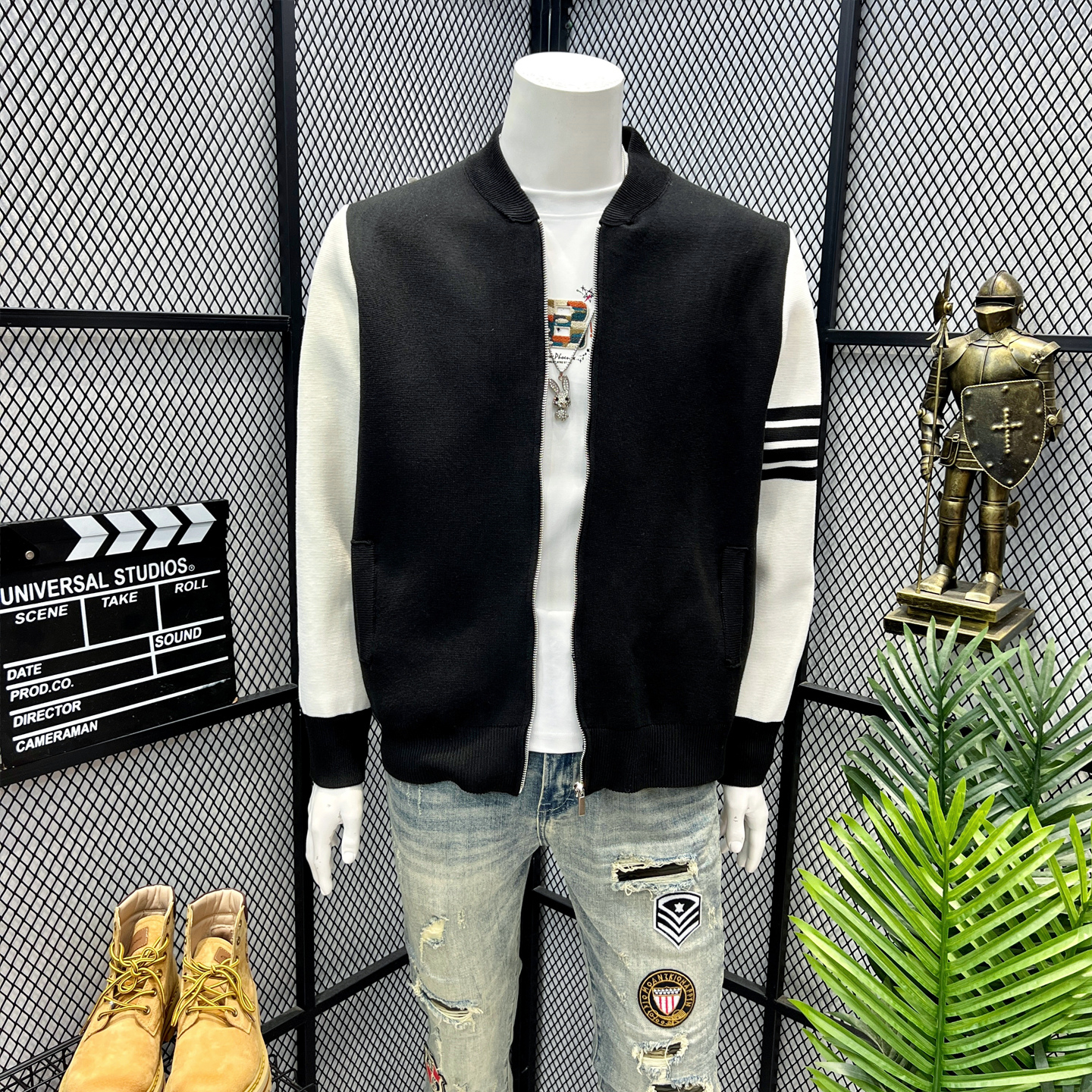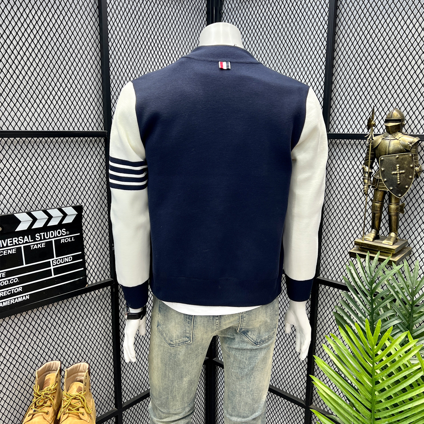 秋冬季潮牌tb棒球外套男撞色拼接四条杆拉链针织夹克开衫毛衣帅气