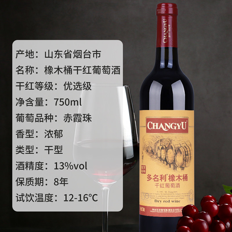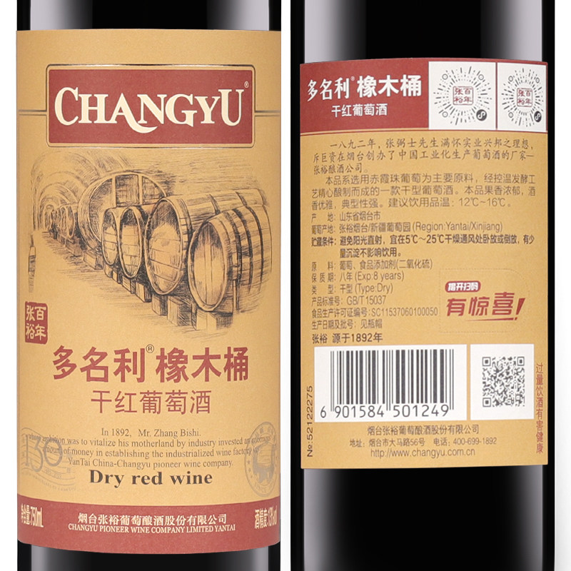 张裕官方正品多名利橡木桶干红葡萄酒赤霞珠红酒整箱六支过节送礼
