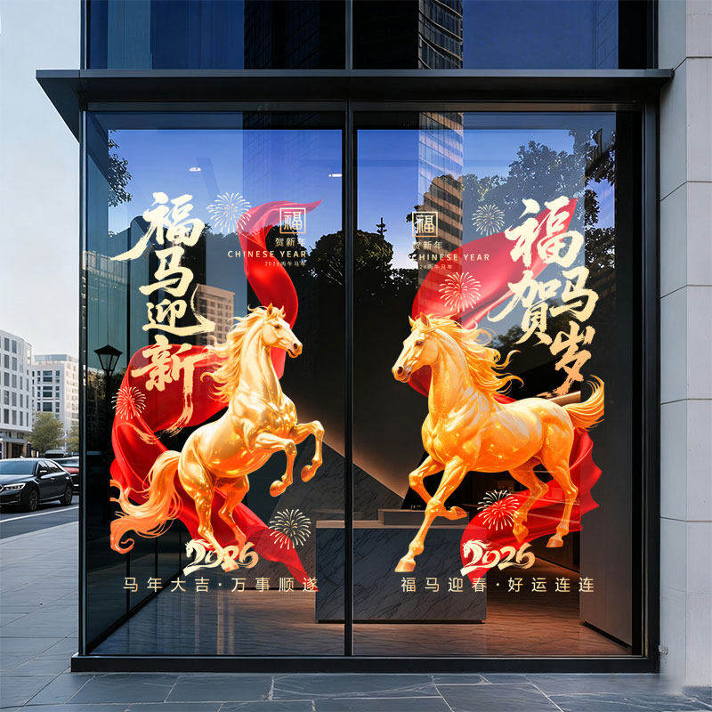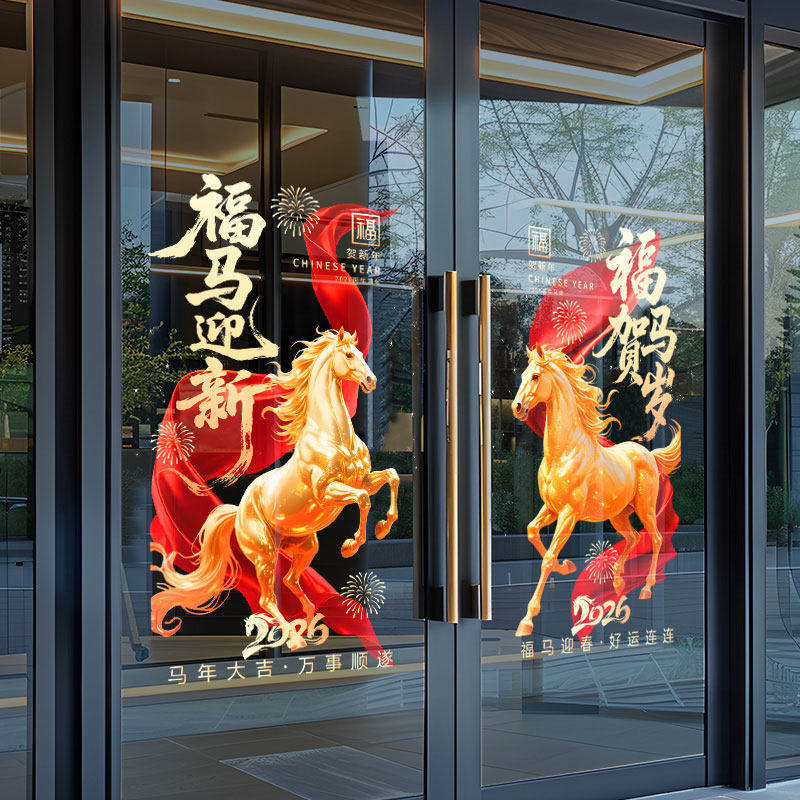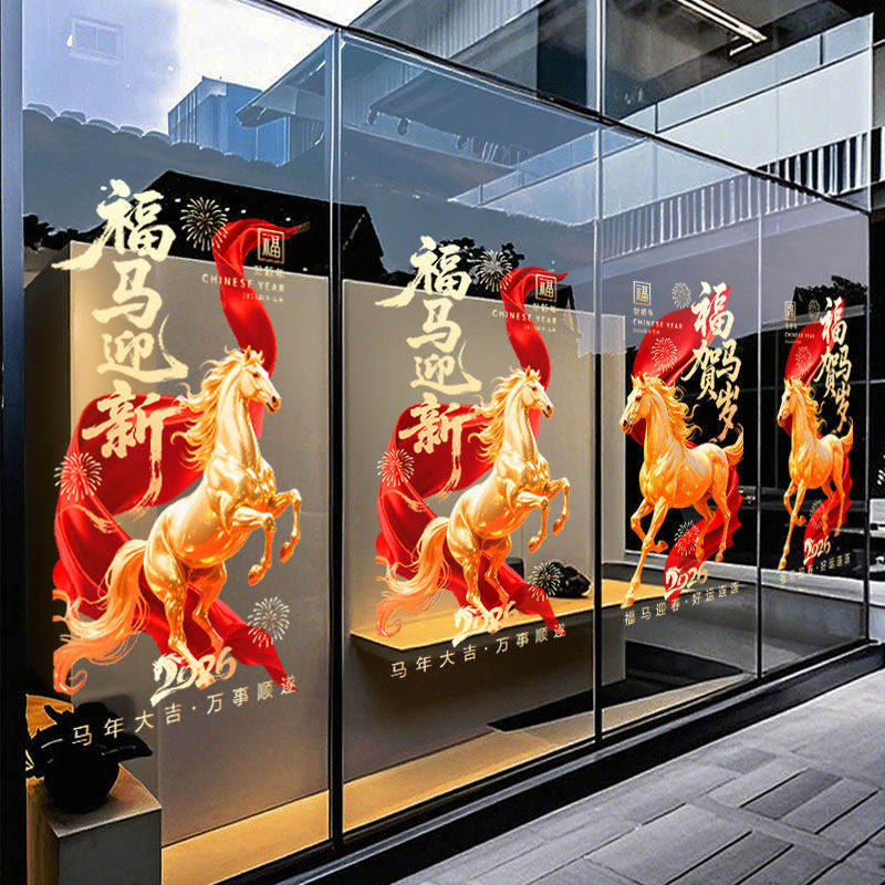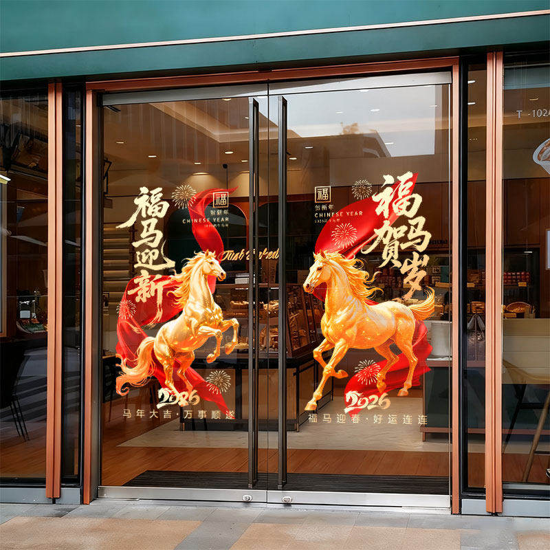 2026马年玻璃贴新年装饰静电贴纸过年门贴春节窗花贴氛围创意布置