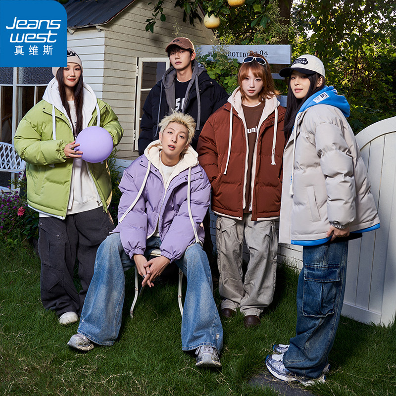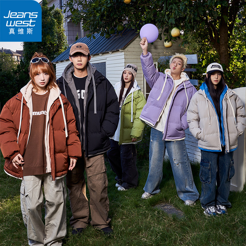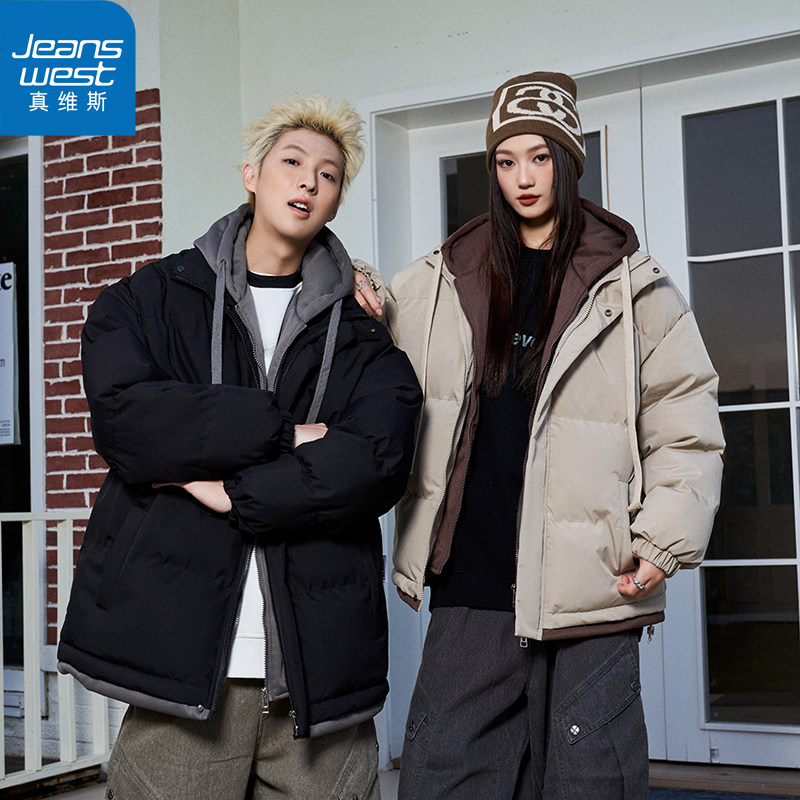 【真维斯】棉服男女同款冬季假两件连帽情侣休闲加厚棉衣潮流外套