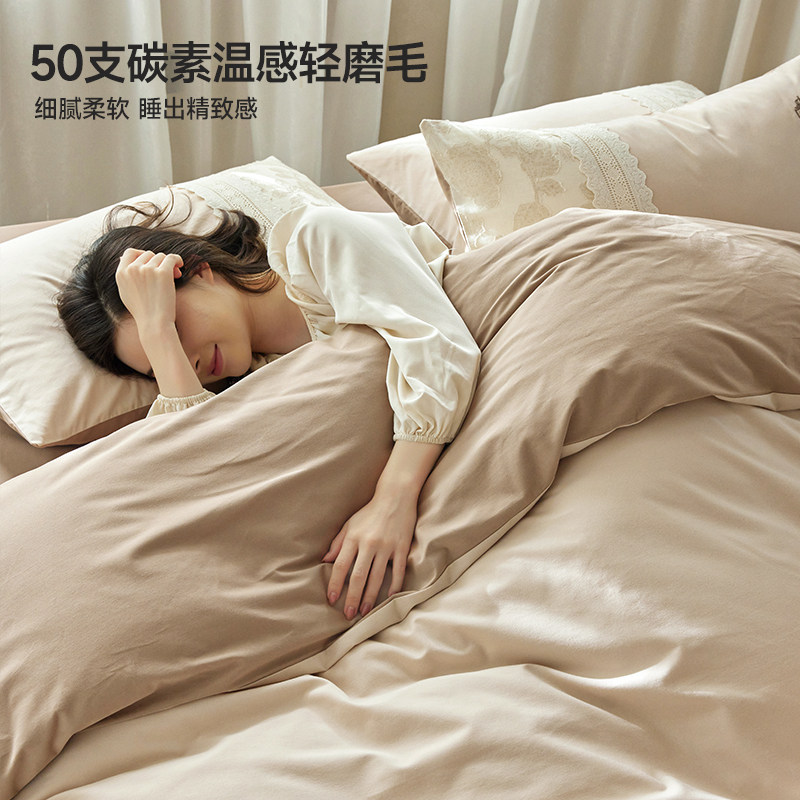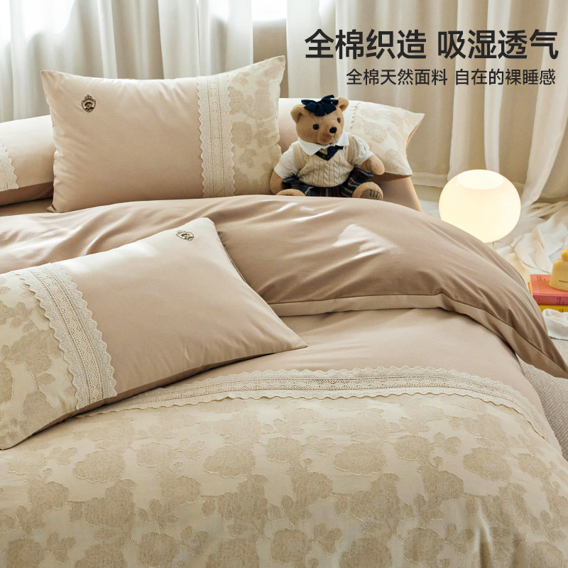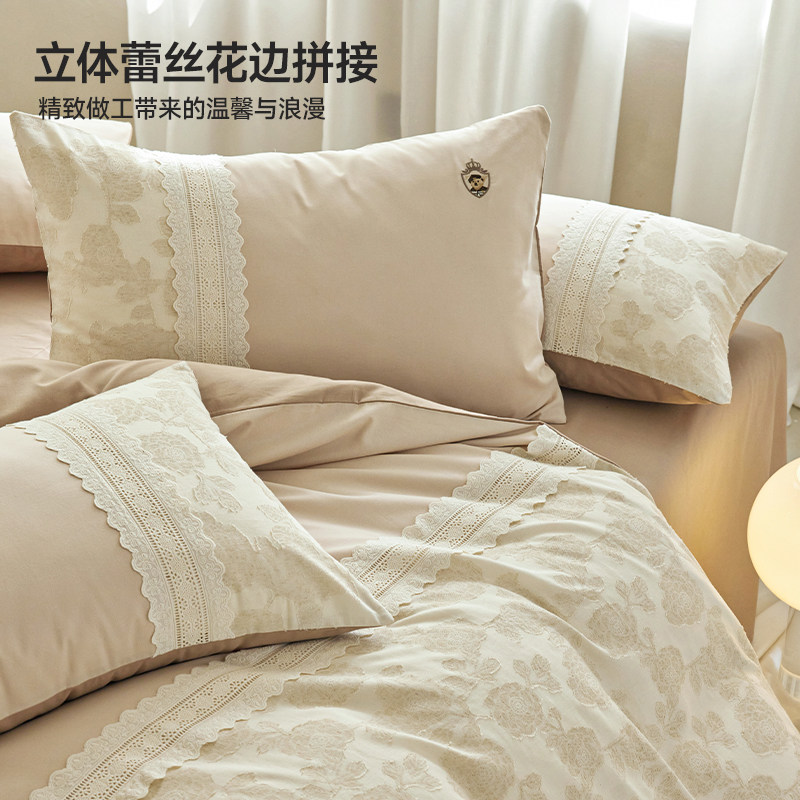 TeenieWeenie全棉轻磨毛四件套纯棉法式花边款被套床单加大床笠款