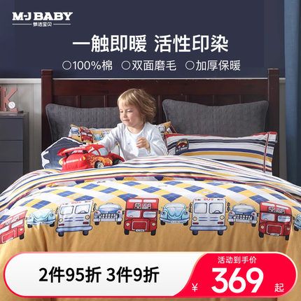 YS梦洁宝贝纯棉加厚磨毛四件套卡通儿童三件套冬季全棉床品家纺