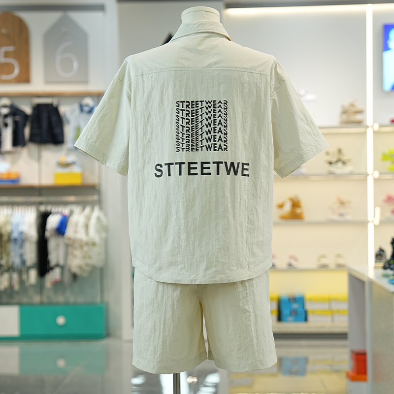 港风套装男士短袖衬衫短裤薄款潮流时尚宽松休闲韩版两件套夏季款