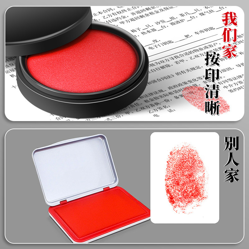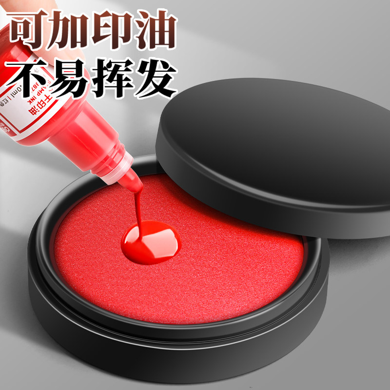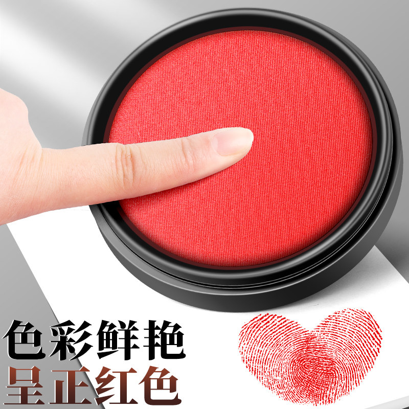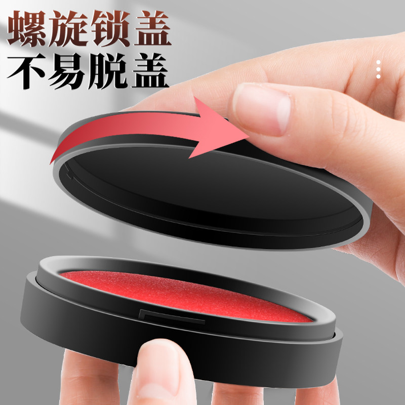 得力印泥快干印台红色大号印尼办公用品便携红印泥按手印指纹印油小号速干印台盒海绵芯水硬泥印章印泥盒圆形