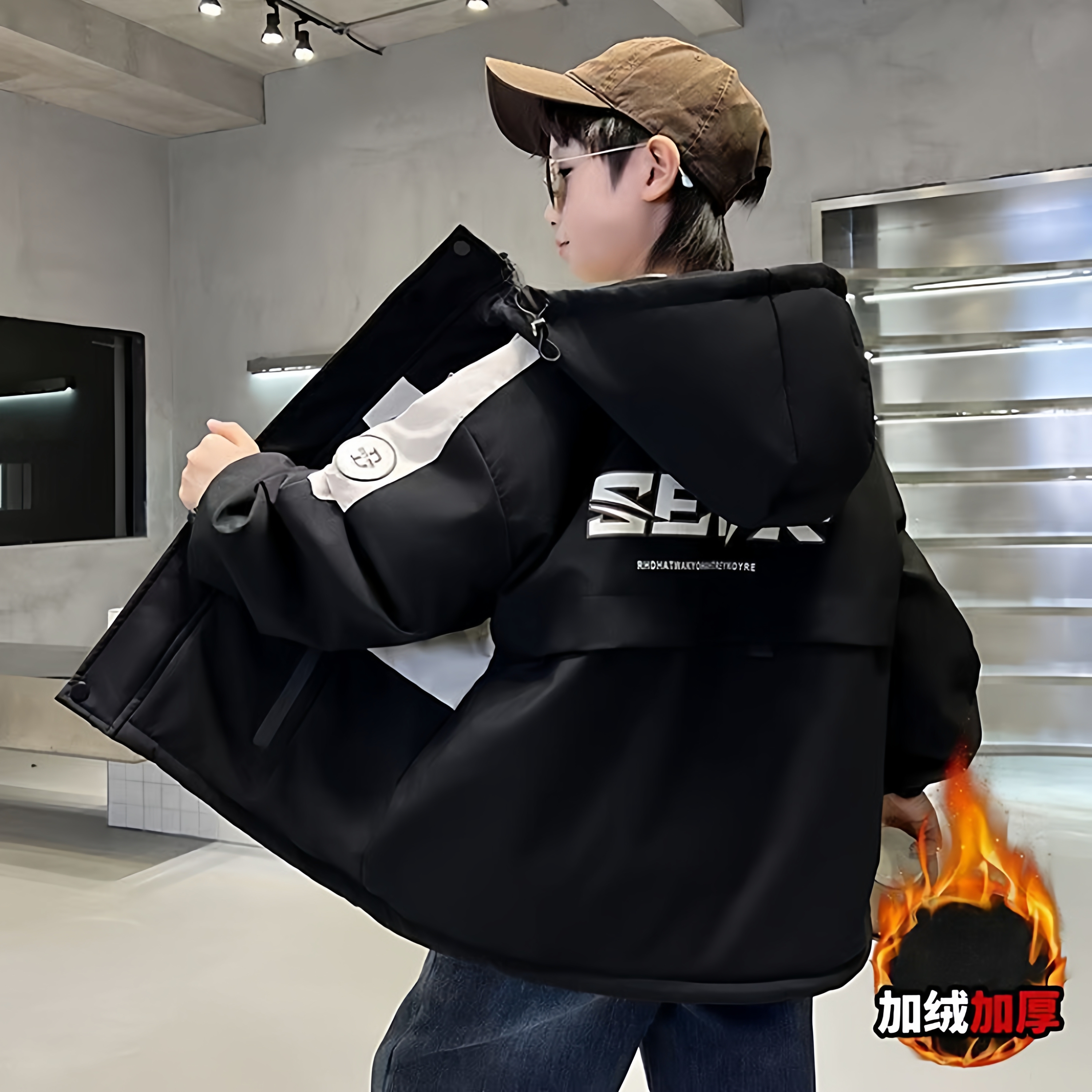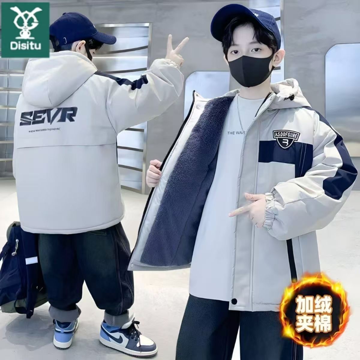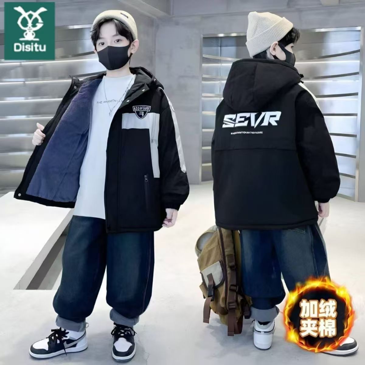男童棉服儿童加绒加厚冲锋衣2025新款中大童加棉夹克服冬季外套潮