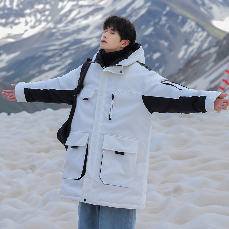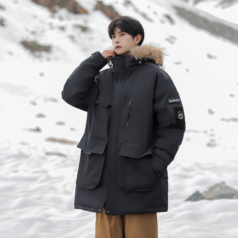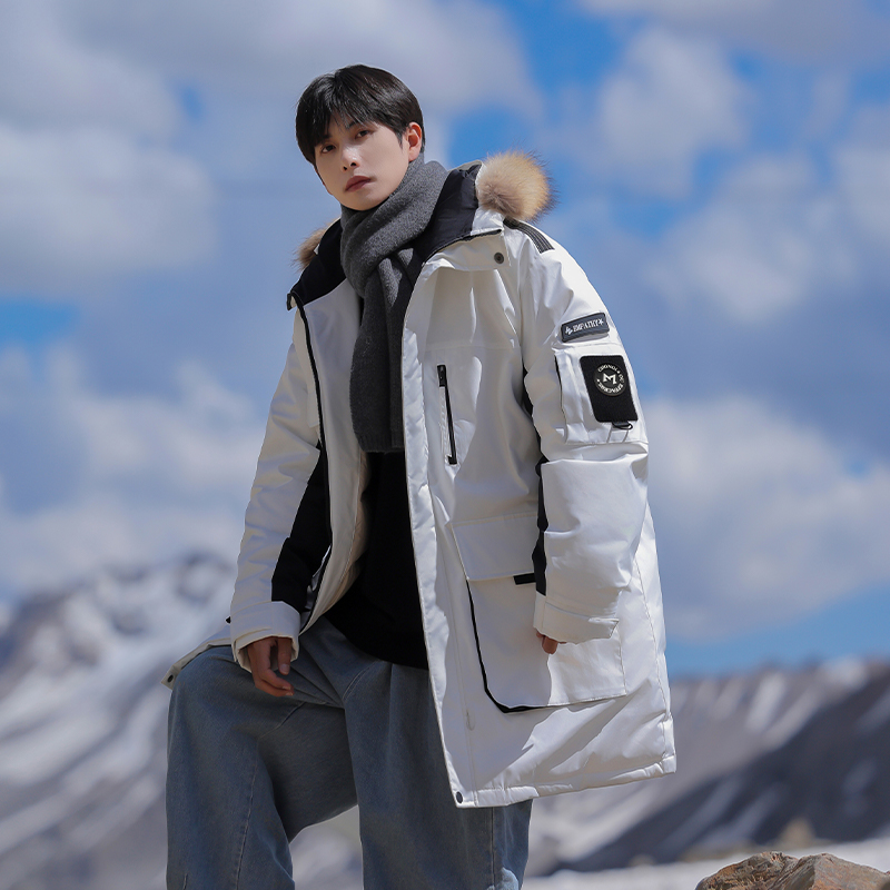 回力工装毛领羽绒服男士冬季中长款加厚2025新款男生冲锋滑雪外套