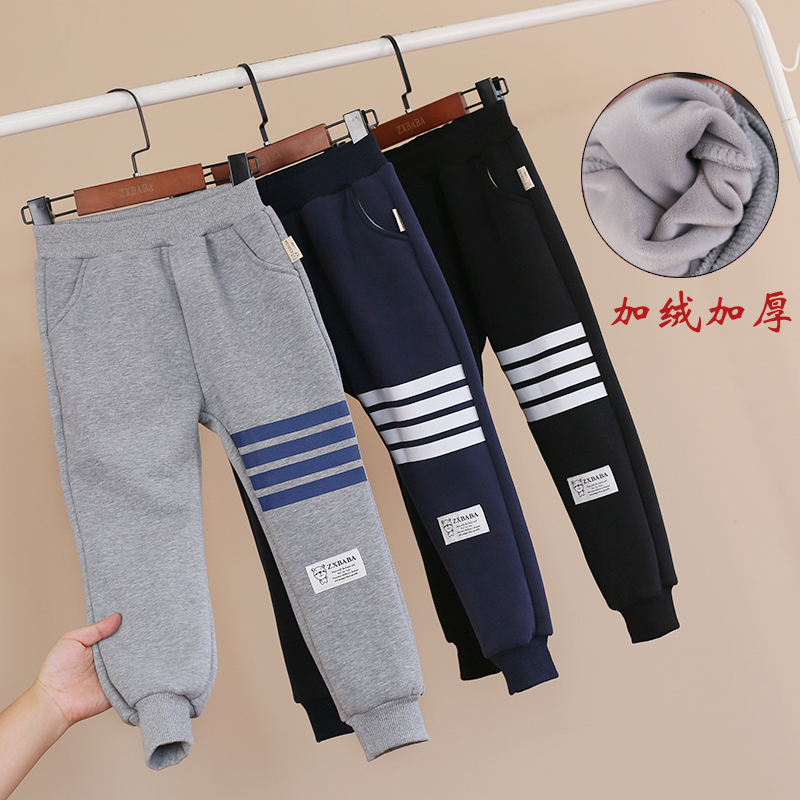 儿童加绒加厚棉休闲长裤冬款男童保暖洋气运动卫裤中大童外裤潮