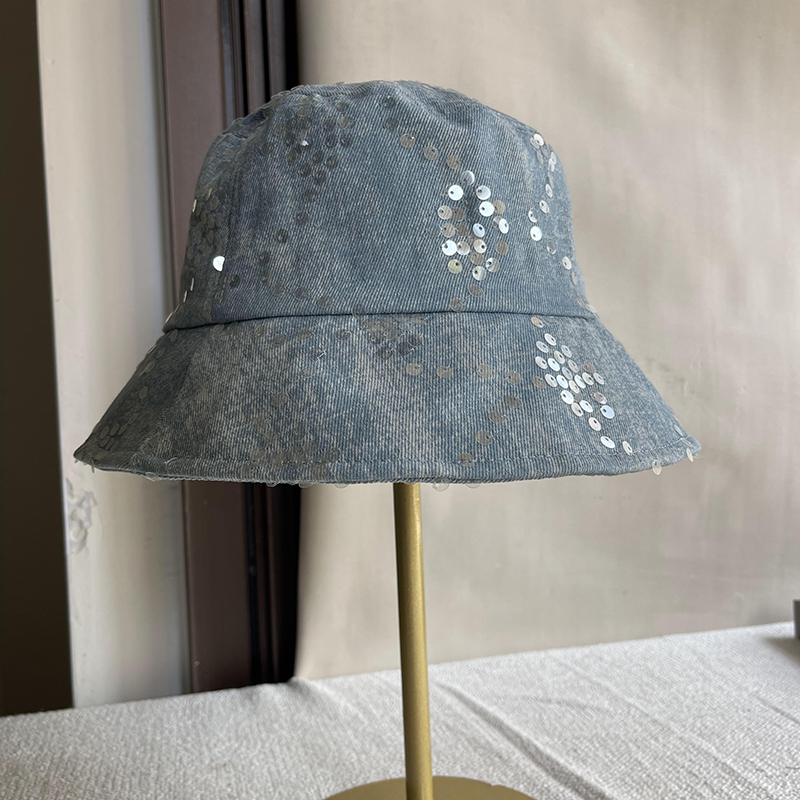 出韩国蓝色牛仔亮片时尚渔夫帽子女春夏防晒遮阳可折叠显脸小盆帽